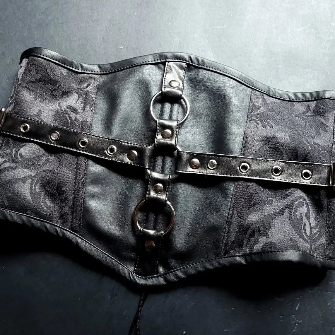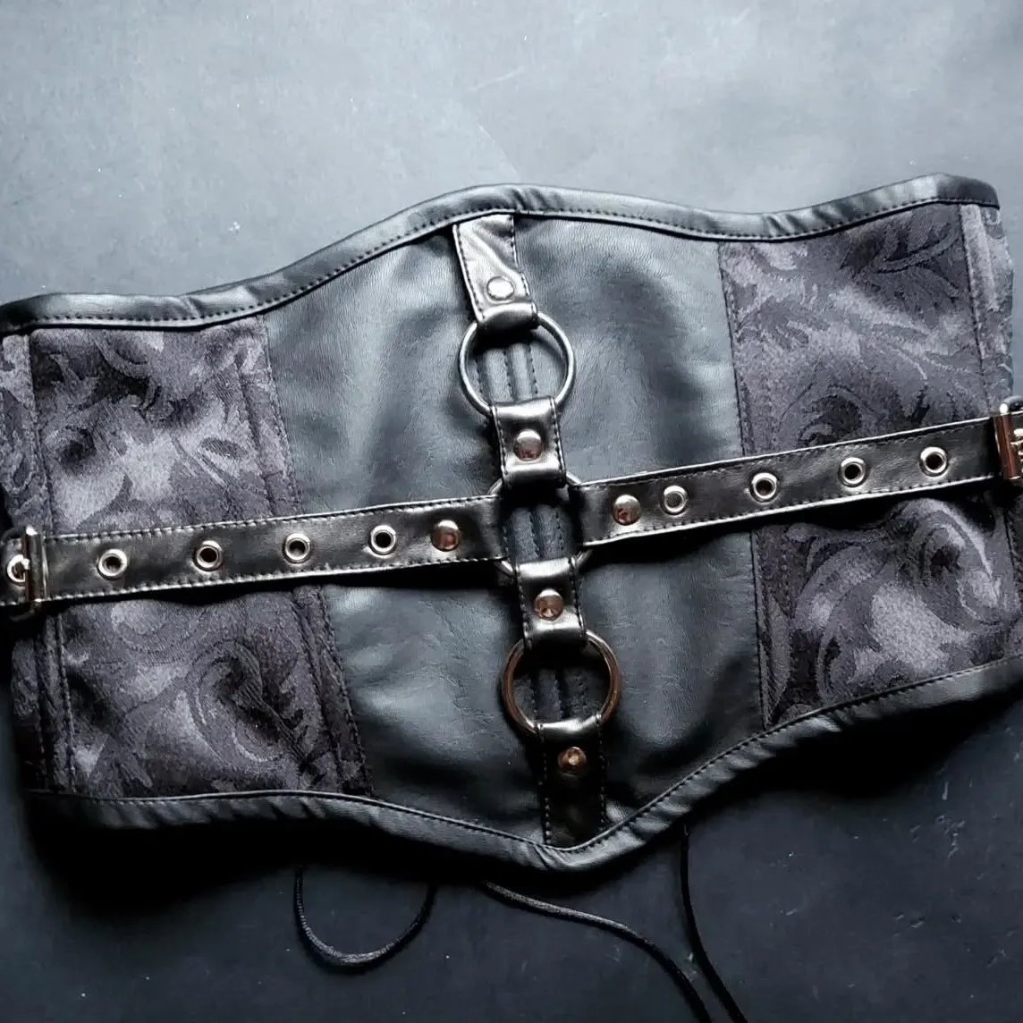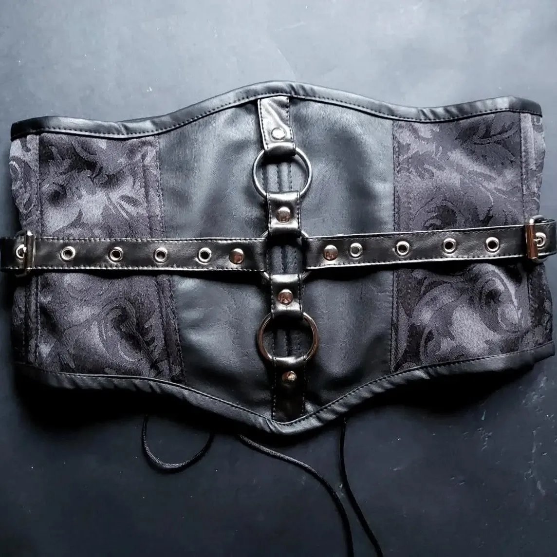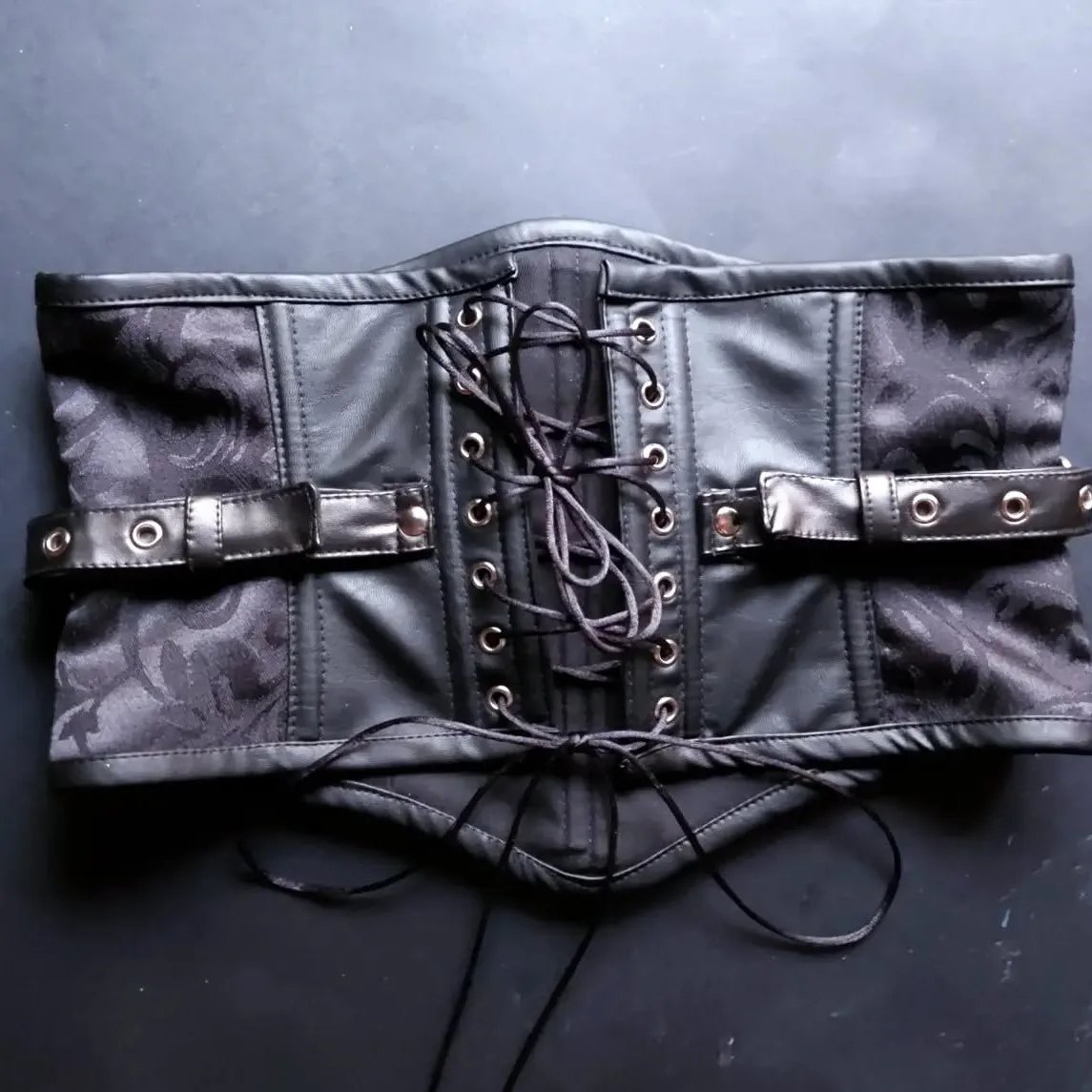 Black leather and Brocade Underbust Corset For Women With Adjustable Shapewear Corset